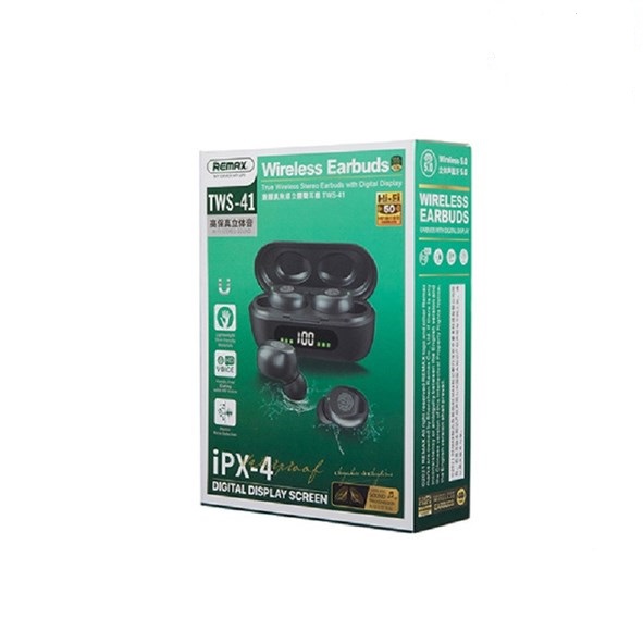 هندزفری دو تایی مدل TWS-41 توسط برند معتبر ریمکس از جنس پلاستیک ABS و پلی کربنات مقاوم ساخته شده است که صدایی قدرتمند با بیس عالی را برای دوستداران موسیقی به گوش می رساند. ایرفون های سبک آن به صورت In Ear و با طراحی ارگونومیک، داخل گوش کاملا فیکس شده . این هندزفری از گواهینامه استاندارد IPX4 نیز برخوردار است که با قابلیت ضد رطوبت، قطرات آب و تعریق برای فعالیت های پرتحرکی مانند ورزش کردن، دویدن و پیاده روی در زیر باران و … مناسب می باشد و همچنین افتادن های پی در پی سری ها از داخل گوش و خستگی در اثر استفاده طولانی مدت را نیز تجربه نخواهید کرد. این هندزفری از طریق بلوتوث نسخه 5٫0 به گوشی های موبایل، تبلت ها و دیگر دستگاه های هوشمند متصل می شود و تا شعاع 10 متری بدون افت کیفیت و قطعی کارایی لازم برای انتقال صدا را انجام می دهد برای هندزفری بلوتوثی دوتایی یک میکروفون داخلی HD مکالمه هایی با صدایی بسیار شفاف را برای کاربر برقرار خواهد کرد. درایورهای 13 میلی متری این هدفون با پوشش پولی استر فیلم، فناوری کدک صوتی AAC و چیپست های هوشمند کاهش نویز می توانند صدایی قدرتمند با کیفیت HiFi و بیس عالی را در دامنه فرکانسی 50 هرتز تا 20 کیلوهرتز با امپدانس 32 اهم و حساسیت سیگنال به نویز 70 دسی بل به صورت استریو به گوش برسانند. پاسخ فرکانس مناسب این ایرفون ها تمامی جزئیات زیر و بم موسیقی در حال پخش را بدون تاخیر در ارسال صدا و تصویر برای حالت های سینمایی تماشای فیلم و همچنین هنگام بازی ارائه می دهد. این هندزفری ها دارای باتری با ظرفیت 400 میلی آمپر ساعت می باشند که توانایی 3 ساعت بدون توقف دارد و 50 ساعت در حالت استند بای می باشد .این هندزفری را میتوان برای موزیک و مکالمه استفاده کرد. این هندزفری در کیس دارای LED است که زیبایی آن رو دوچندان کرده است و میزان شارژ را نشان می دهد.