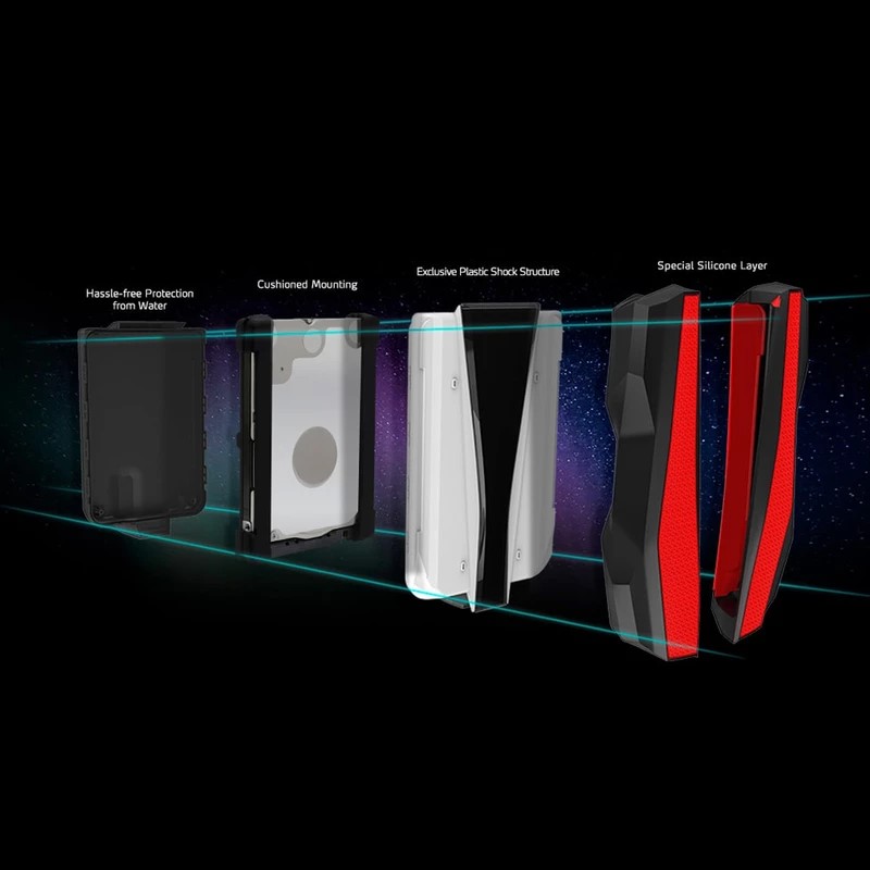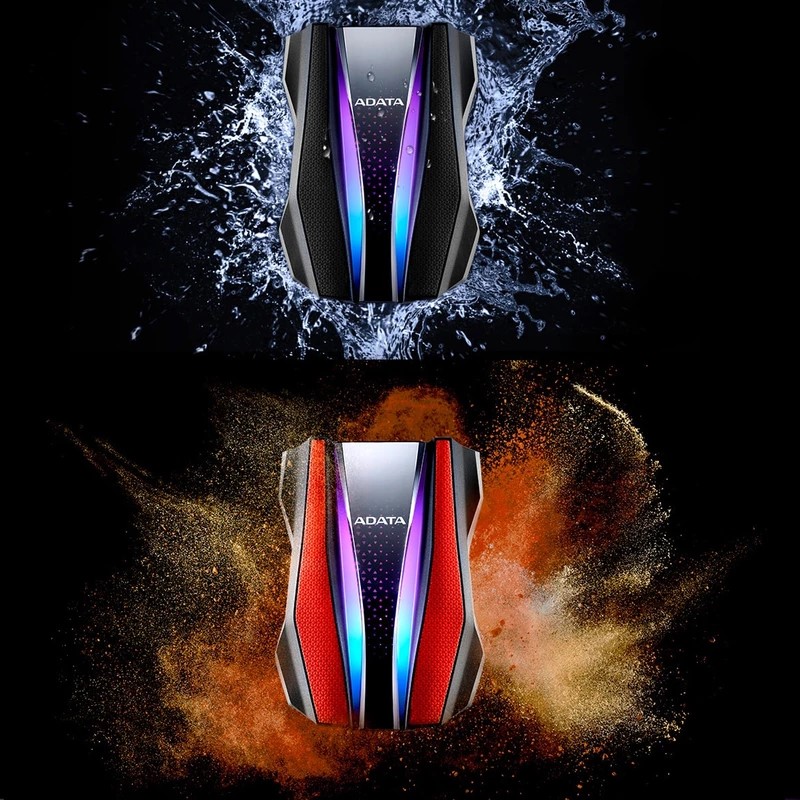 معرفی هارد اکسترنال ای دیتا مدل مدل HD770G ظرفیت ۱ ترابایت به عنوان اولین هارد اکسترنال با نور RGB علاوه بر ذخیره سازی تمام بازیها و دادهها، به شما امکان میدهد تا ذخیره سازی خود را با سبک و ذوق شخصیتان همراه کنید. این هارد دیسک با استاندارد IP68 عملکرد بیشتری ارائه میدهد زیرا ضد آب و گرد و غبار بوده و با ساختار سه لایه ای که دارد، در برابر ضربهها مقاوم است. هارد اکسترنال گیمینی HD770G با لبه های پخ دار و دو نوار RGB سبک و ظاهر شما را به نمایش می گذارد. همچنین با وجود یک قطعه مرکزی با الگوی سوراخ که با تپش نور زنده میشود، طراحی این هارد دیسک بی نظیر است.