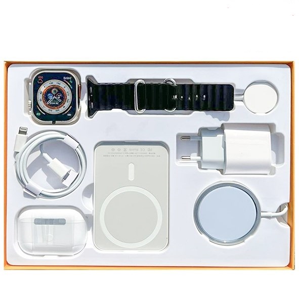 پک هدیه X10 Unique Combination  دارای ساعت هوشمند مدل X10 Ultra , های کپی دقیق از روی مدل اپل واچ سری 8 اولترا سایز 49 میلیمتر ( جدید ترین و قوی ترین ساعت اپل ) است ، ساعت هوشمند موجود در پک هدیه X10 Unique Combination دقیقا بر اساس اپل واچ اولترا ساخته شده و نسبت به قیمت خود از امکانات خیلی فراوانی برخوردار هست یکی از نقاط قوت این ساعت هوشمند صفحه نمایش بزرگ ، با کیفیت و وضوحی بی نظیر ، روشنایی خیلی زیاد نمایشگر که باعث جذابیت آن شده و در زیر نور خورشید هم میتوان به راحتی با آن کار کرد.