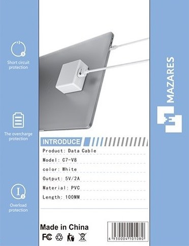 تصویر کابل شارژ اندرويد مازارس MAZARES-C7-V8